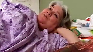 Banging busty old grannie from both ends