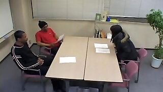 Japanese floozy in a hot threesome action with 2 ebony dudes