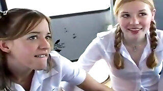 Girl-girl sex one the bed between attractive Nikki Fox and Milf Amy