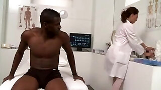 Saki Shiina has hairy coochie measured and sucks doctor phallus