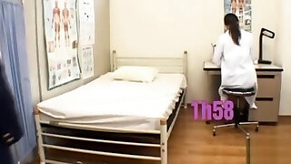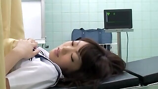 Noisy oriental schoolgirl getting fingered by her physician on the medical bed
