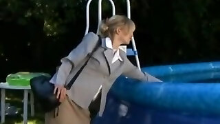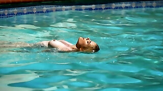Sexy Fit Big-chested Cougar Seduces a Horny Teen In the Pool To Get His Hard Boner In Her Shaved Pussy