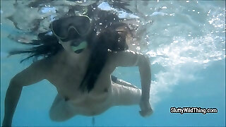 Jumping on a hard trouser snake by the pool is a favorite hobby of a Thai slut with no bra-stuffers