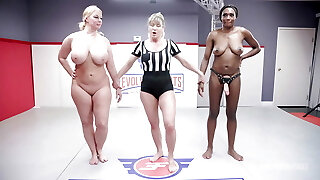 Lesbian wrestling ebony wrestles against Plumper redhead