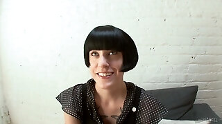 Cute emo teen damsel makes guy sniff her genitals in jeans.