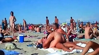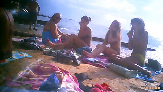 Upshorts dick flash for gang of girls on beach