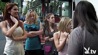 Party girls gargle and fuck male strippers in public