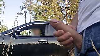 I pull out my lollipop on a beach area. This young chick who drives from this beach, looks shocked by what she sees !! She want sight how i cum