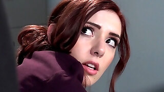 Redhead Doll Riding A Massive Dick Gonzo In The Office