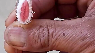 отважная темноволосая наслаждается траханием своих собственных внутренностей под солнечным светом
