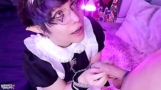 成功的家伙是处理与可爱的口头工作由真正火热的亚洲女仆Danica